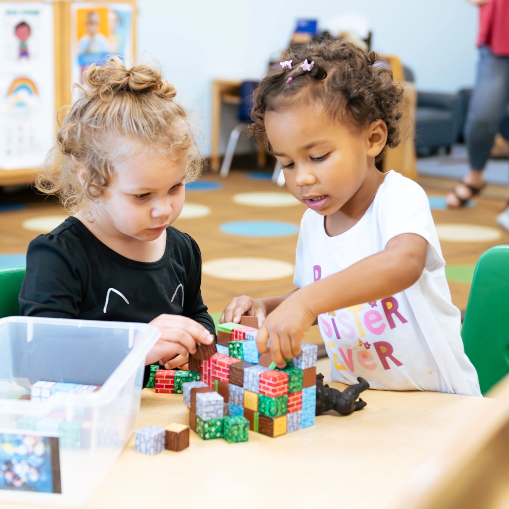 In our toddler classrooms, we encourage exploration, movement, and connection. Through age-appropriate routines and play-based learning, toddlers build social skills, independence, and confidence, all while being guided by compassionate teachers who meet them with patience and care.